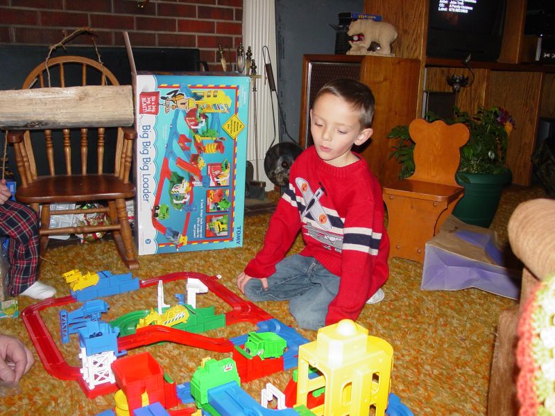 Dec 2004 -- Michael checking out Kaden's new loader toy on Christmas Day